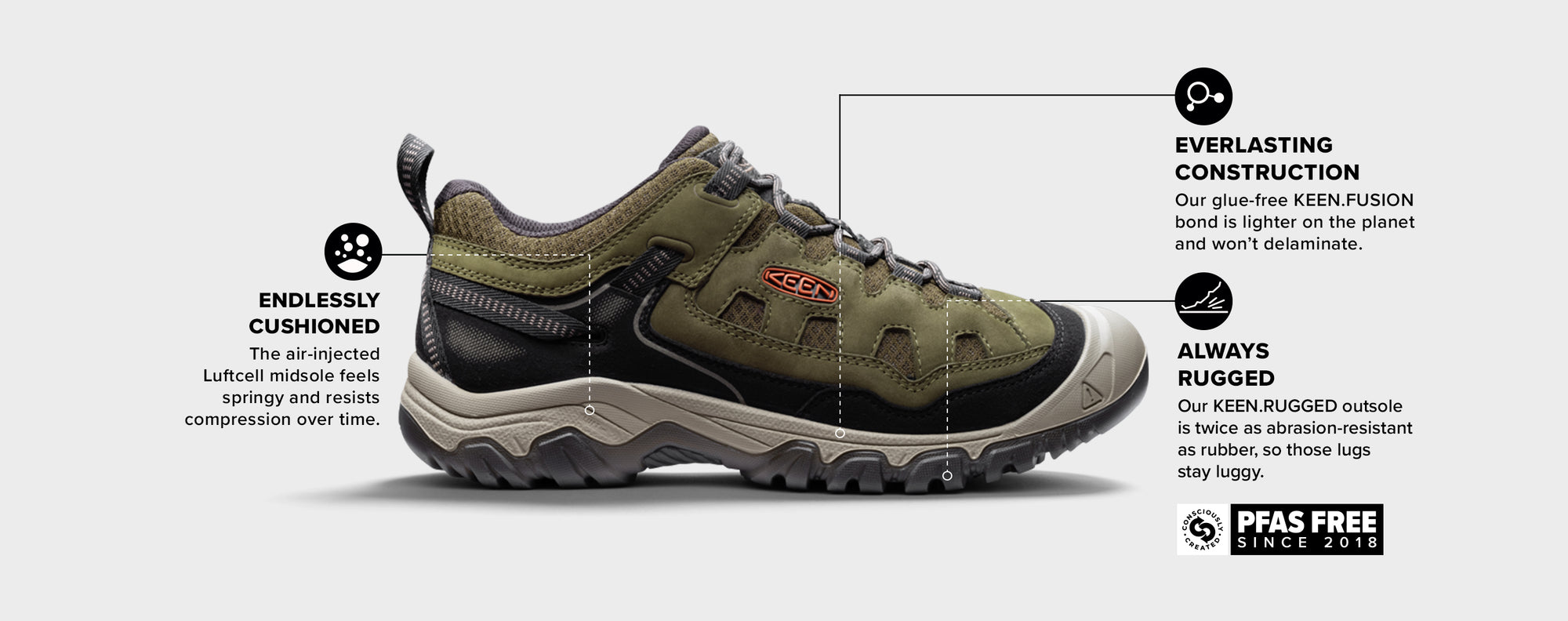 Our glue-free KEEN.FUSION bond is lighter on the planet and won't delaminate. We guarantee it.